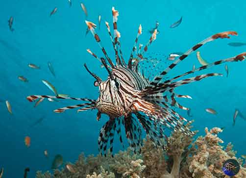 Lionfish have gained notoriety in recent years through their release on the east coast of the USA by irresponsible aquarium keepers. With no natural enemies, they have spread south and are all around the Caribbean. These voracious feeders have decimated native fish populations even to depths where they don't occur in their native areas. They have also spread from the Red Sea to the Mediterranean through the Suez canal, and are now causing ecological issues there.