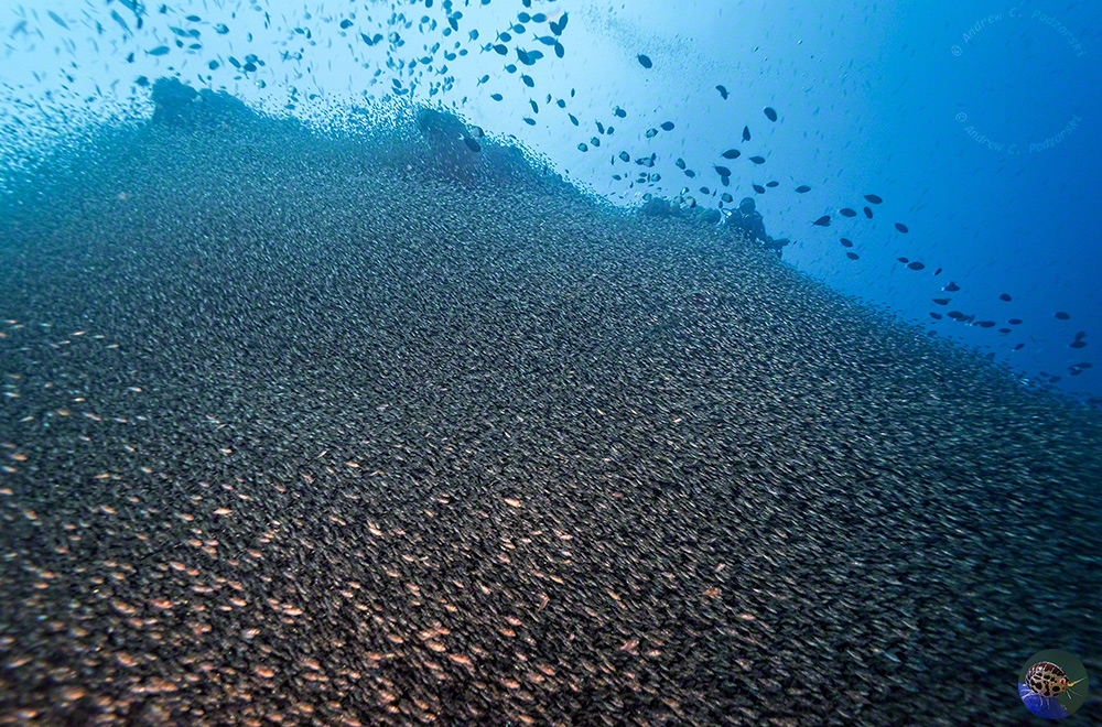 Once every few years, a rocky underwater hill near Una Una, a tiny island in the middle of Tomini Bay, North Sulawesi, is home to an amazing spectacle. Dead & dying tobies litter the surface, the surface of corals and fill up Barrel Sponges. The water is a soup of tobies, while millions aggregate around the hill.