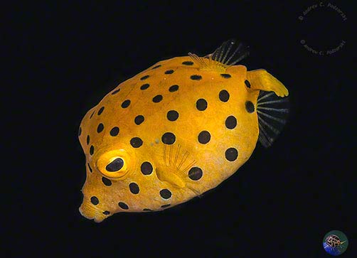 This is the only fish group that has a carapace of bony plates that functions as body armour. Cowfish have a pair of foward-pointing sharp horns above the eyes. Some species produce a skin toxin, ostracitoxin, that is and additional deterrent to predators.