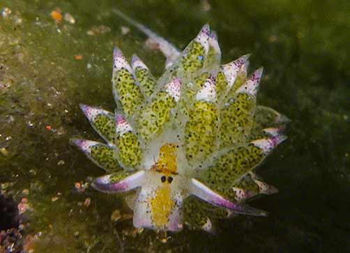 The best known genus here is Cyerce. These have flattened, often very colourful cerata which they move backwards and forwards like a butterflys' wing as they move.