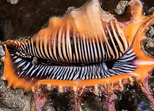 One characteristic feature is a notch in the outer lip that enables the conch to stick out its' right eye above its' upper surface without exposing the rest of the body. Males and females are separate. 100 000 to 500 000 eggs are laid in a gelatinous tube and generally held under the lip of the shell until hatching.
