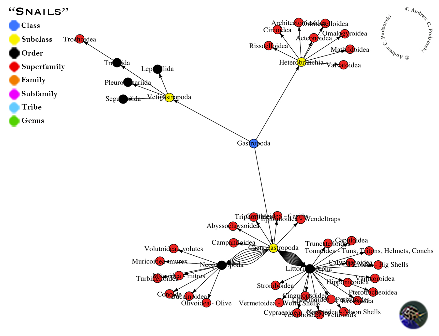 Bubble Shells, Stomatella and Sundials form to some extent a bridge between the nudibranchs and marine shells. Wendelstraps with their strange shells are apart from other marine shells in their anatomy.
