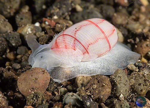 The name Bubble Shell relates to the inflated shape of the shell. Some are night active hunters while others graze algae during the day. They are distantly related to Sundial Shells.